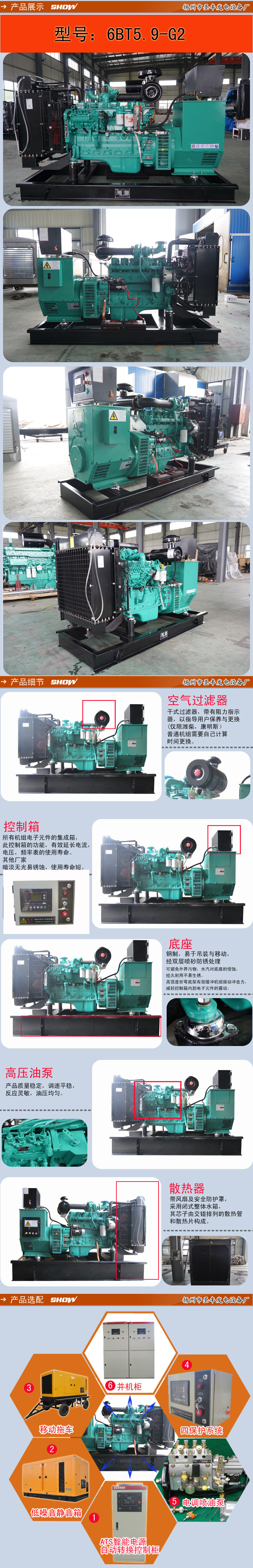 | 柴油機型號:6BT5.9-G2 | 調速方式:電子調速 |